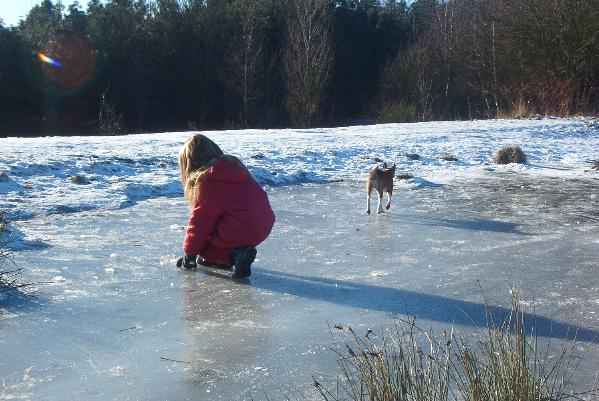 Von wasserverrückten Hunde wird dieser kleine Tümpel gerne zum Baden genutzt. Jamilah watet gerne hindurch und sucht etwas zum herausholen. Wir werfen ihr dann kleine Stöckchen hinein, die sie mit äußerster Sorgfalt wieder herausholt.