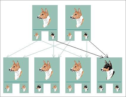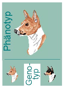 Bei der Heterozygotie zeigen die Basenji im Erscheinungsbild (Phänotyp) in der Regel keine Mischfarbe, die sich aus der Fellfarbe beider Eltern mischen ließe (auf Ausnahmen, die diese Regel bestätigen, komme ich etwas später zu sprechen). Vielmehr wird sich eine der Erbinformationen durchsetzen und die andere Erbinformation im Erscheinungsbild verdrängen. Sie ist damit dominant gegenüber der unterlegenen (rezessiven) Erbinformation.