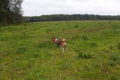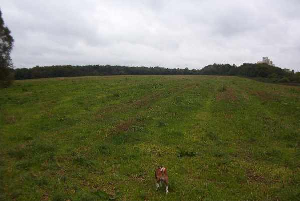 Der Acker wird als Getreidefeld von einem Bauern bestellt. Daher ist er vom Frühjahr bis zum Herbst lediglich zu umrunden. Dieser Weg ist dann teilweise nicht gut befestigt. Im Herbst bietet der abgemähte Acker jedoch eine wunderbare Fläche zum buddeln. Denn überall sind die Eingänge der Feldmausbauten, die zum schnüffeln und graben einladen.