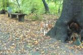 In diesem Wald haben wir bisher noch kein Wild angetroffen. Mit der Ausnahme von Eichhörnchen, die sich beim Erscheinen eines Hundes sofort auf den nächsten Baum zurückziehen.