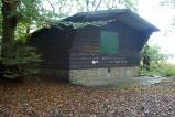Wenn wir den Wald von der Wiese aus betreten, liegt dort sofort eine Hütte. Wir können jetzt den Weg nach links oder recht in den Wald hinein gehen. Da es sich um einen Rundweg handelt, ist dies auch fast egal.