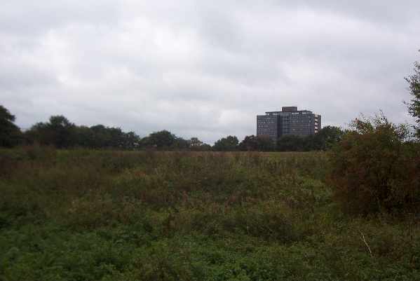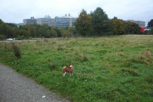 Links geht es nun zum Tümpel (von hier läßt sich die Wiese gut umrunden) oder nach rechts in den Wald.