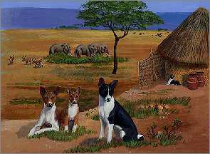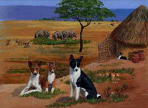 Noch heute begleiten die Basenji die Bewohner der Regenwälder zentral Afrikas (z.B. im Kongobecken die Pygmäen) bei der Jagd.