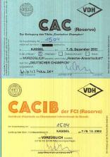 Den hat Jamilah auch souverain mit einem vorzüglich (V2) erobert. Die uns ausgehändigten Reserve-CAC und Reserve-CACIB sind leider nicht zu verwenden, da die erstplatzierte T'Pau die Anwartschaften selber benötigt. Schade auch ;=(