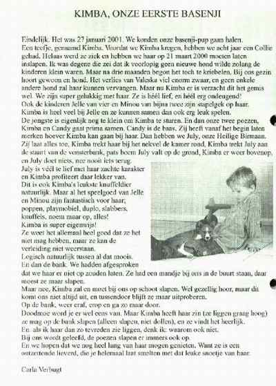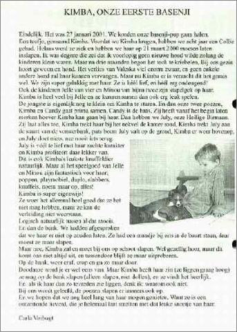 Kimba lebt bei der netten Familie Verbugt in Holland. Den folgenden Artikel hat Frau Carla Verbugt für das Clubblad 2001/2 geschrieben. Darin schildert sie, wie Kimba sich in ihrer neuen Familie eingelebt hat.