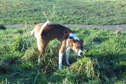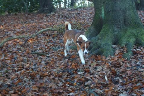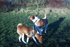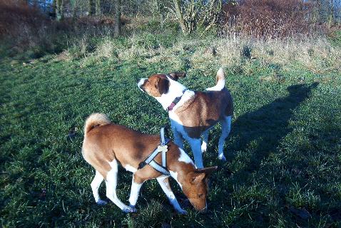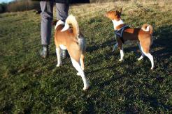 Er hat Wesenszüge, die einem Basenji ähneln. Lediglich sein enormes Bellvermögen und die hängenden Ohren verraten: Hier ist nur die Hälfte Basenji drin. Er ist ein netter Kerl und uns hat es Spaß gemacht eine Runde auf der Wiese mit ihm und seinem Frauchen zu drehen.
